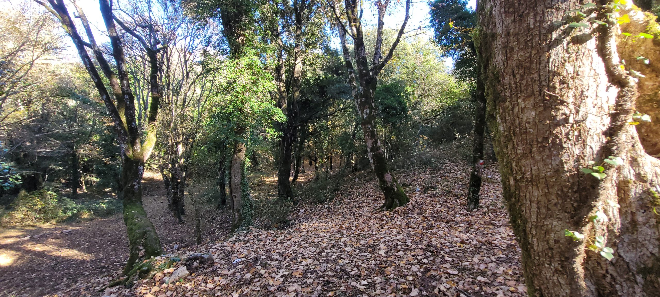 Il percorso stato scelto per alcune peculiarità; - Parcheggio facile; situato a circo 30 metri dall’innesto del sentiero - Facilità nel raggiungere l’area scelta - Sentiero ben segnato al pino di calpestio con indicatori del CAI su alberi e rocce - Dislivello e fondo del terreno accettabili per una attività di questo genere - Presenza di Attrattori/Effettori - Possibilità di spazi aperti per eventuali attività correlate o alternative se alcuni non si sentissero a proprio agio Si cercherà di effettuate le uscite nel periodo primaverile ed autunnale in quanto in estate il fondo delle aree è secco e la temperatura elevata non agevola, mentre nei mesi invernali si potrebbe trovare anche la neve e il vento forte non aiuterebbe. Nei mesi indicati potremmo trovare temperature ideali fioriture diverse in primavere e cambio dei colori del bosco in autunno. Il tutto per creare anche visione diversa del bosco in tutte le sue variabili stagionali. Il bosco essenzialmente è formato da Lecci, Olmi, Aceri con qualche esemplare di conifera. Il terreno è a tratti sassoso ma sostanzialmente ricoperto da un folto strato di foglie secche e arbusti.